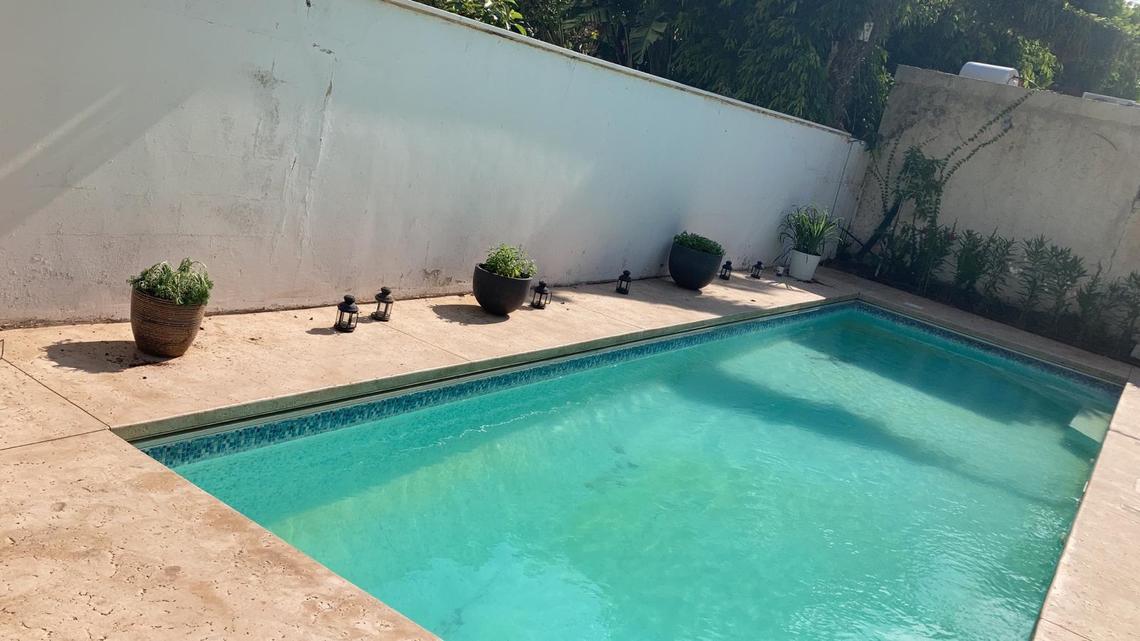 Du kan bu i ein flott villa med hage og privat basseng, Her er det plass for alle til å sitja i hagen eller inne eller vera i bassenget. Stor grillplass. 10 minuttars gange til stranda. Ta med heile familien, gjerne fleire generasjonar. Om hausten og om våren er temperaturane i Israel som om sommaren i Norge.